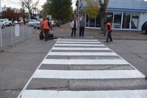En el marco de los trabajos de pintura y señalización de la vía pública, el mandatario comunal Ing. José Luis Salomón, observó el desarrollo de los mismos en la intersección de las avenidas Pereyra y Rivadavia.