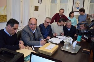 Autoridades de la Mesa Ejecutiva de la Bolsa de Comercio de Rosario, sus mercados adheridos y la Cámara Arbitral de Cereales recibieron este miércoles al precandidato a la presidencia de la Nación por el Frente de Todos, Alberto Fernández, y su equipo de trabajo.