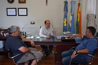 Los presidentes de la Sociedad Rural de Saladillo, Alejandro Repetto, y de la Cámara de Comercio, Juan Javier Gualberto, fueron recibidos en el Palacio Municipal por el mandatario comunal Ing. José Luis Salomón.