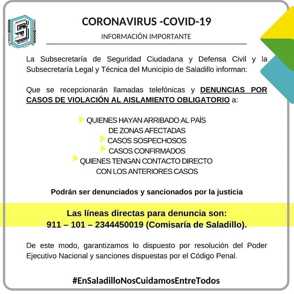 Publicado el 17/03/202016/03/2020 por saladillocampoLa Subsecretaría de Seguridad y Defensa Civil y la Subsecretaría Legal y Técnica del Municipio de Saladillo informan