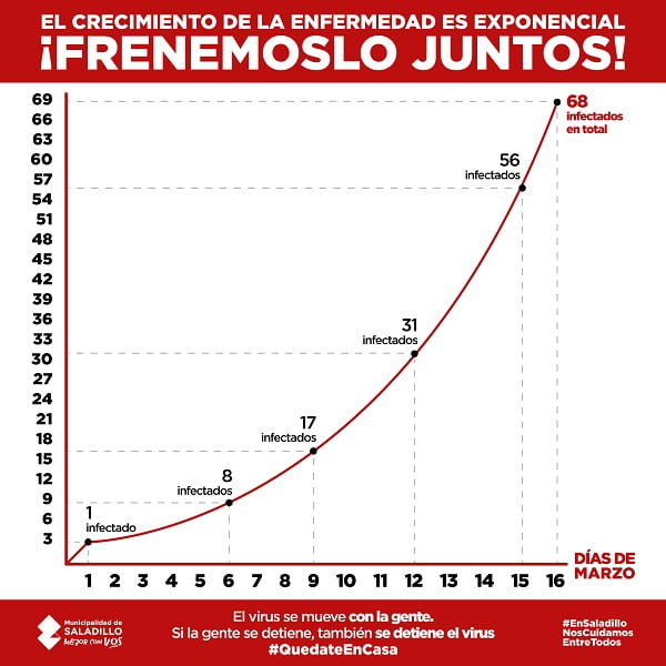 Publicado el 18/03/202018/03/2020 por saladillocampoEL CRECIMIENTO DE LA ENFERMEDAD ES EXPONENCIAL ¡FRENEMOSLO JUNTOS! El virus se mueve con LA GENTE. Si la gente se detiene, también se DETIENE EL VIRUS. #EnSaladilloNosCuidamosEntreTodos #QuedateEnCasa #MunicipalidadDeSaladillo #MejorConVos