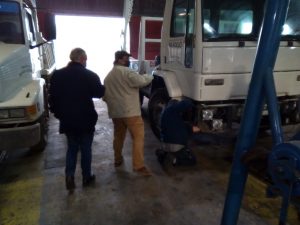 El mandatario comunal saladillense realizó una visita de trabajo al corralón Municipal en compañía del Director de Mantenimiento del Parque Automotor, Norberto Larocca, observó los diferentes trabajos de reparación de equipos, maquinarias y vehículos oficiales del municipio que se llevan a cabo en estos días en dicho lugar y que dan continuidad al trabajo de reparaciones permanentes que se desarrollan desde esa área municipal.