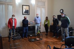 El Intendente José Luis Salomón, recibió al Diseñador Industrial local Indalecio Sabbioni, junto al Secretario de Desarrollo Local, Vladimir Wuiovich y el Subsecretario de Desarrollo Local, Tomás Chaime, para charlar de los proyectos que viene trabajando el emprendedor local.