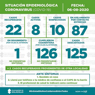 Publicado el 07/08/202006/08/2020 por saladillocampoSITUACIÓN EPIDEMIOLÓGICA EN SALADILLO | 06/8/2020