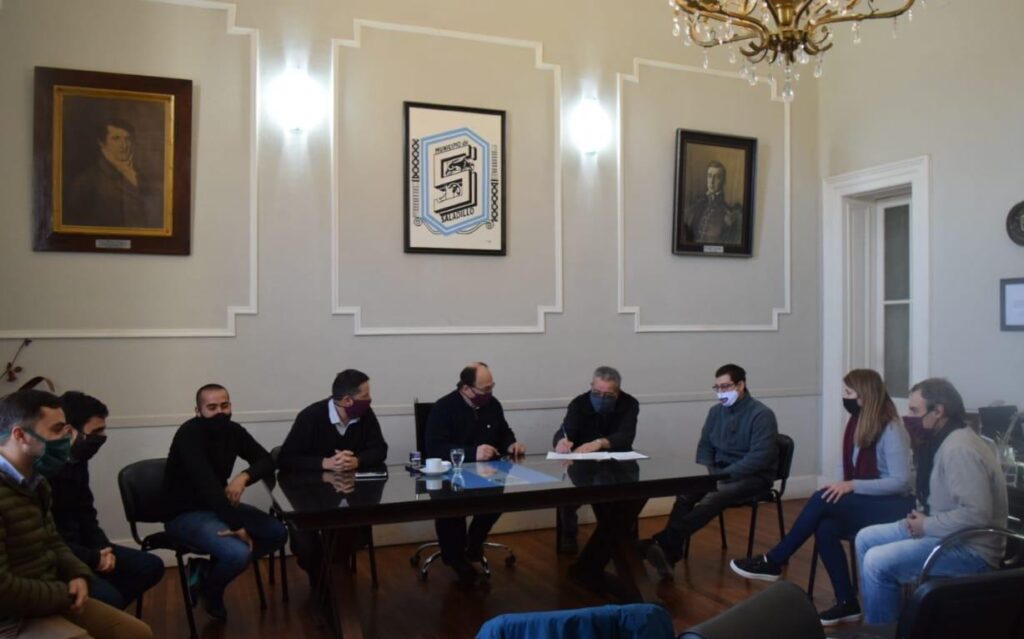 El Intendente José Luis Salomón junto al Secretario de Desarrollo Local Vladimir Wuiovich y al Subsecretario Tomás Chaime, renovaron el convenio con la cooperativa molinera SICSA, representada por autoridades de la cooperativa, Daniel Juan, Aldo Oran y Hernán Ricci, para la utilización del predio donde va a construirse la playa de estacionamiento para camiones.