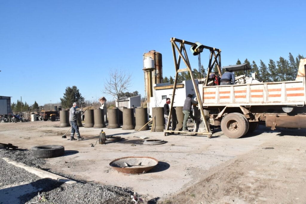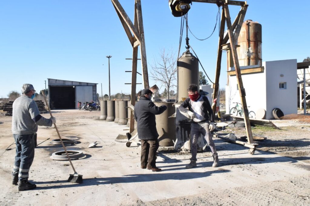 El Intendente Salomón estuvo recorriendo y observando el sector donde se fabrican los tubos de hormigón que son destinados básicamente a obras de recambio e instalación de los mismos en el sector rural.