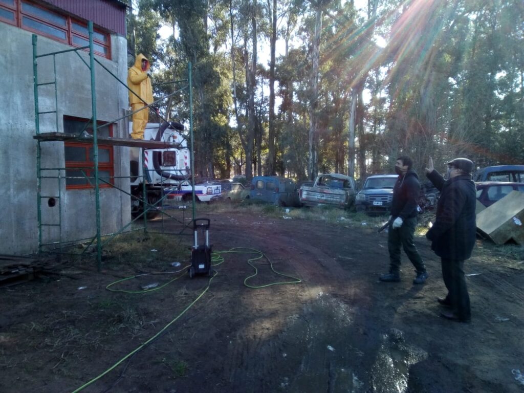 Durante el recorrido realizado por el Intendente Municipal por distintos sectores y dependencias, días pasados, estuvo observando los trabajos de hidrolavado de los edificios que forman parte del Corralón Municipal.