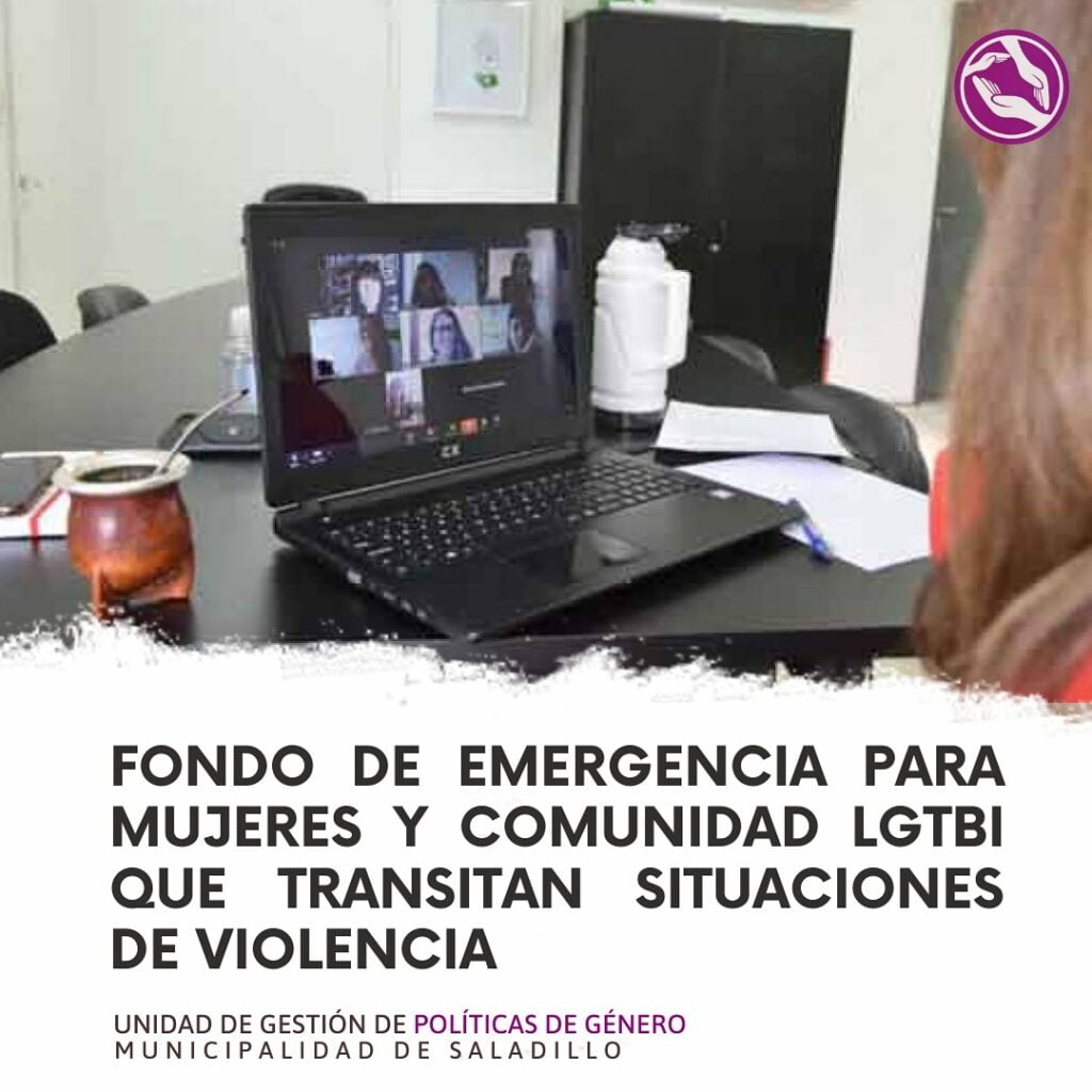En el día de ayer, la Lic. Viviana Pace, integrante de la Unidad de Gestión de Políticas de Género de la Municipalidad de Saladillo, participó de una reunión junto al área del Ministerio de las Mujeres, Género y Diversidad de la Provincia de Buenos Aires, que se encarga de la habilitación del programa Fondo de Emergencia, con el objetivo de conocer la partida presupuestaria correspondiente a nuestra ciudad y lineamientos de aplicación.Dicho fondo está destinado a mujeres y a la comunidad LGTBI (Lesbianas, Gays, Bisexuales, Transgénero, e Intersexuales) que estén transitando una situación de violencia de género y que requieran una intervención de forma urgente.