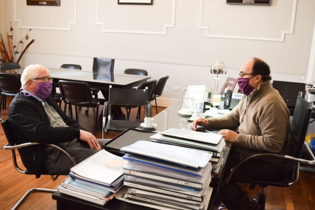 El Intendente José Luis Salomón recibió en su despacho al sacerdote Alejandro Boudgouste para dialogar sobre varios temas, especialmente sobre la Pandemia del Covid 19 y su impacto en nuestra comunidad.