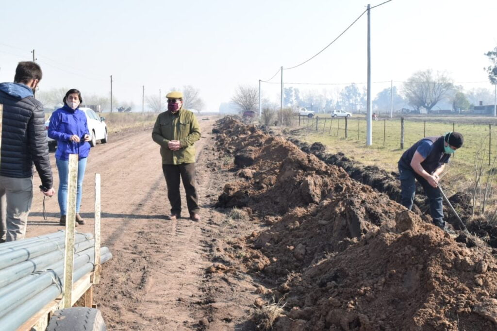 El Intendente Ing. José Luis Salomón junto a la Subsecretaria de Servicios Sanitarios y Gestión Ambiental Mariela Incolla y el Director del área Ing. Lisandro Lalli estuvieron presentes en la obra de extensión de cañería de agua en Saladillo Norte.La misma se realiza con personal de la mencionada Subsecretaría.