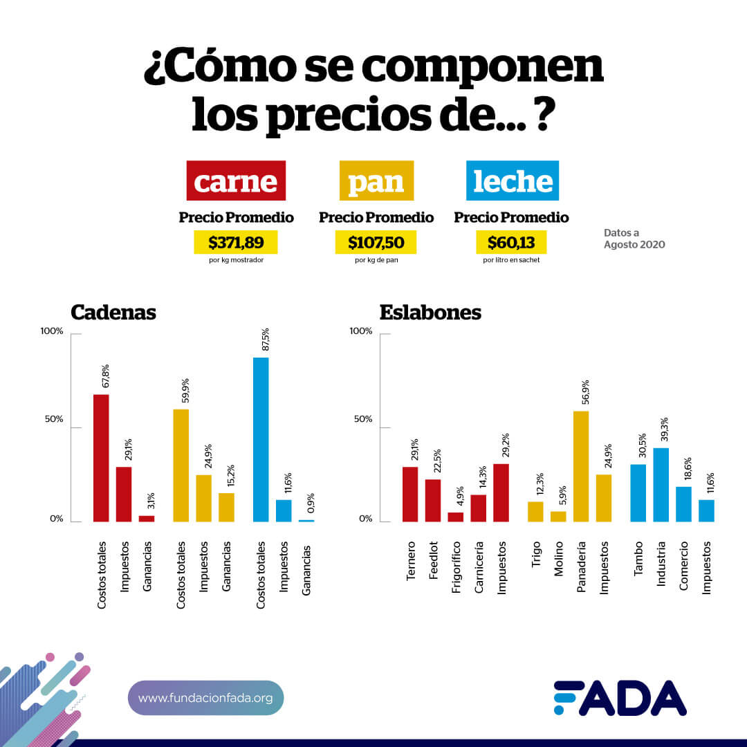 La Fundación Agropecuaria para el Desarrollo de la Argentina (FADA) dio a conocer su informe semestral que releva la composición de los precios de tres alimentos básicos, como lo son la leche, el pan y la carne.