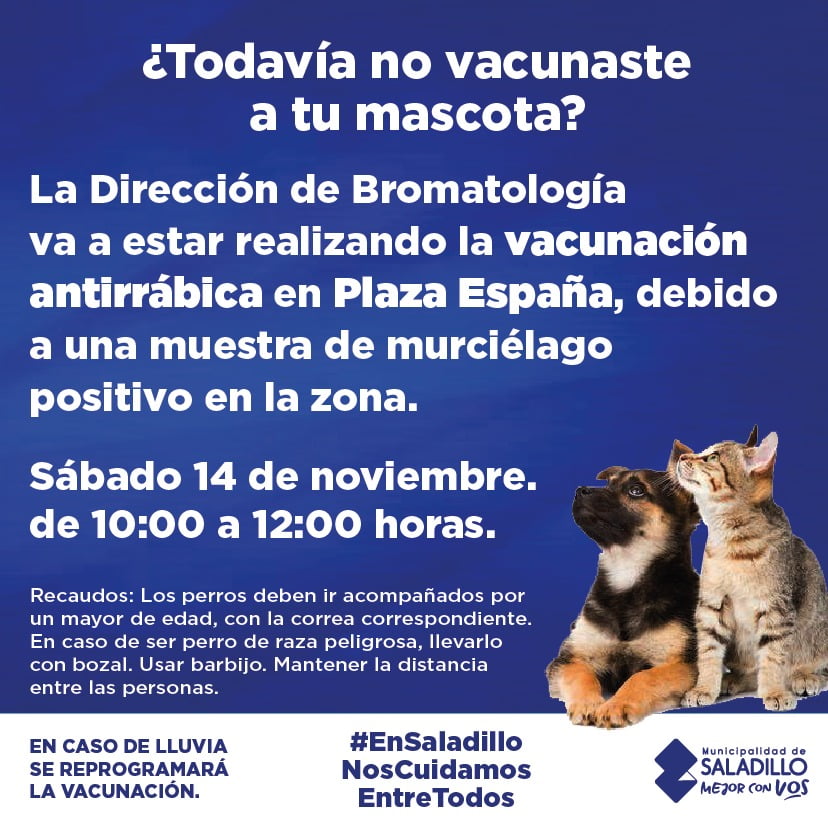 La Dirección de Bromatología va a estar realizando la vacunación antirrábica en Plaza España, debido a una muestra de murciélago positivo en la zona.