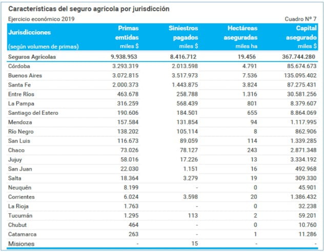 El detalle de cuántas hectáreas aseguradas hubo en cada provincia y qué monto se aseguró y se pagó en siniestros puede observarse en el mapa interactivo y en el cuadro que siguen a continuación: