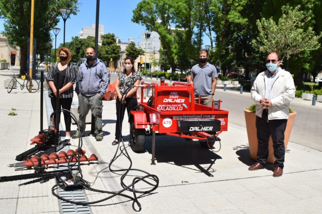 El Intendente Municipal junto a funcionarios de la Subsecretaría de Servicios Sanitarios y Gestión Ambiental presentaron la adquisición de una nueva tunelera con 12 puntas de 45 mm y 12 mechas de 150 mm.