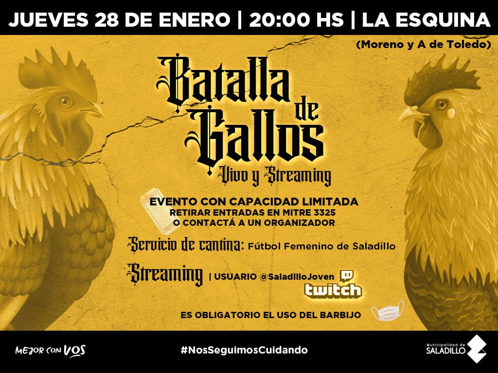 Nos volvemos a encontrar, de otra manera, pero nos volvemos a encontrar. Este jueves, en La Esquina de Moreno y A. De Toledo, batalla y cantina para comer algo y además colaborar con las chicas del Futbol femenino de Saladillo.A las 20Hs. Ahí nos vemos. El uso del barbijo es obligatorio y el distanciamiento social, te pedimos que nos ayudes a cuidarnos entre todos. Por entradas: Mitre 3325 (Sede CEDHJ) o contacte con nosotros por Md, o alguno de los organizadores.¡Nos vemos! Te esperamos • EVENTO GRATUITO CON CAPACIDAD LIMITADA#FalsoJuevesJoven#NosEncontramos#ConProtocolo#EnLaEsquina#EntradasLimitadas#NosSeguimosCuidando#Jovenes#Jueventudes#Saladillo#Cedhj