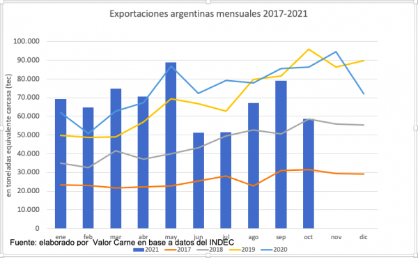 Analizando las exportaciones en valor sucede lo contrario, con aumentos en casi todas las mediciones.