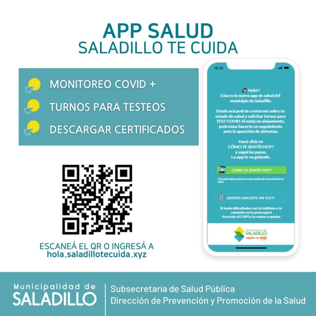 La Subsecretaría de Salud Pública Municipal, puso en funcionamiento la «APP Salud Saladillo Te Cuida», con el fin de brindar seguimiento personalizado del estado de salud de los ciudadanos, mediante el monitoreo de casos positivos de COVID.