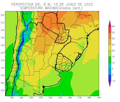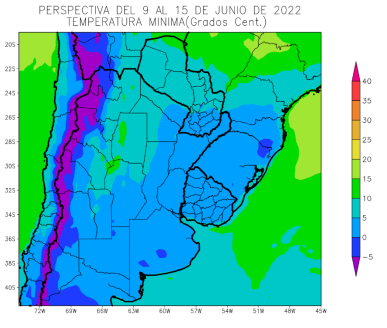 . ? La mayor parte del Paraguay, el este del NOA, gran parte de la Región del Chaco, el noroeste de Cuyo, el norte de Córdoba y noroeste de Santa Fe observarán temperaturas mínimas superiores a 5°C, con focos con valores superiores y otros inferiores, con riesgo de heladas localizadas.