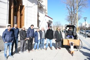 Frente al Palacio Municipal de Saladillo se presentó el nuevo martillo hidráulico adquirido mediante licitación para ser destinado a la cuadrilla de pavimento urbano que depende de la Secretaría de Obras Públicas.
