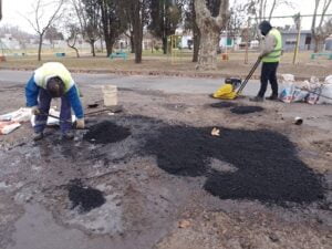 Durante esta semana, la cuadrilla de pavimento municipal que depende de la Subsecretaría de Servicios Públicos, realiza trabajos de bacheo en frío en distintos puntos de la ciudad, tales como en la calle Ex Combatientes de Malvinas.