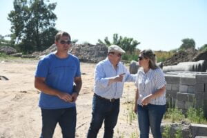 El Intendente Ing. José Luis Salomón observó los trabajos que se llevan a cabo acompañado por la Subsecretaria de Servicios Sanitarios y Gestión Ambiental Ing. Mariela Incolla, el Secretario de Obras y Servicios Públicos Ing. Guillermo Candia y el encargado de esta obra por la empresa constructora, Ing. Fabián Sist.