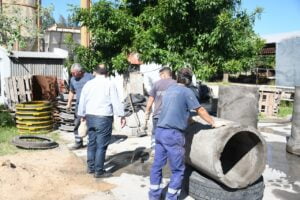 El Intendente Municipal de Saladillo, Ing. José Luis Salomón, concurrió al Corralón Municipal para observar el trabajo de construcción de tubos de cemento que serán destinados al entubamiento del canal aliviador de la Avenida Mariano Acosta.