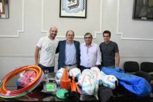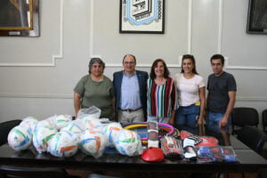 Días atrás, el Intendente Municipal, Ing. José Luis Salomón, junto al Subsecretario de Deportes, Prof. Nicolás Tosca entregaron material deportivo a instituciones de nuestra ciudad: Club Cazón y Club Oro Verde.