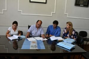 El Intendente de Saladillo, Ing. José Luis Salomón, acompañado por el Secretario De Obras Públicas Ing. Guillermo Candia, la Directora de Proyectos Arq. Albertina Di Iulio y la Subsecretaria De Legal y Técnica Dra. Yamila Artigas, firmó el contrato de inicio de obra del edificio del Jardín de Infantes N° 908.