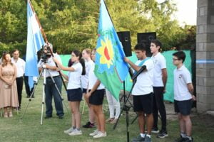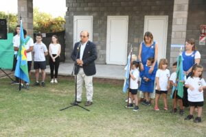 el acto de inicio del ciclo lectivo 2023 en el Colegio Madre Teresa, donde también se inauguró la ampliación del edificio del nivel primario. Estuvo presente el Intendente Municipal Ing. José Luis Salomón, participando del acto protocolar que se desarrolló a las 8 horas.