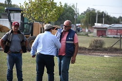 El Intendente Municipal de Saladillo, Ing. José Luis Salomón, acompañado por el Secretario de Obras Públicas Ing. Guillermo Candia y el Subsecretario del área Arq. Matías Salomón, observó los trabajos de construcción de cordón cuneta en las cuadras circundantes al edificio del Centro Universitario Regional Saladillo.