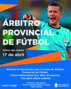 Por informes e inscripción podes contactarte con el árbitro nacional de fútbol, Joaquín Badano.