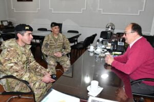 El Intendente Salomón recibió luego de la elección del Domingo al Jefe del Operativo militar que estuvo encargado de la custodia y traslado de las urnas y los lugares de emisión de voto Teniente Coronel Víctor Luis Corti.