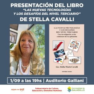 El 1 de septiembre a las 19 horas en el Auditorio Galliani se realizará la presentación del libro de Stella Cavalli «Las nuevas tecnologías y los desafíos del Nivel Terciario»