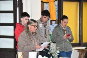 Luego de la ceremonia religiosa para recordar los 60 años de la creación del Grupo Scout Papa Juan XXIII, tuvo lugar en la sede una cena a la canasta de la que también participó el Intendente José Luis Salomón, quien saludó a todos los presentes e hizo entrega de un presente al grupo.