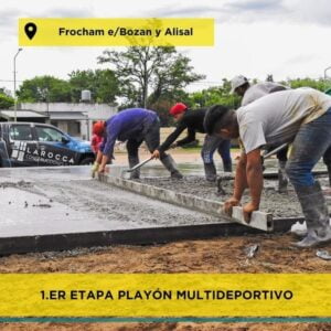 La obra comprende un playón de 1500 m2, torres de iluminación, aros de básquet y arcos de fútbol.