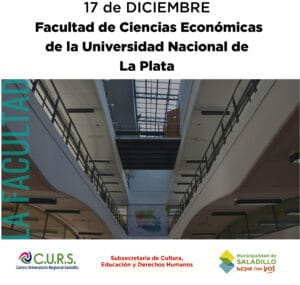 En el aniversario de la creación de la Facultad de Ciencias Económicas de la Universidad Nacional de La Plata, el 17 de diciembre de 1953, la Municipalidad de Saladillo, a través del C.U.R.S., expresa su reconocimiento a esta institución emblemática.
