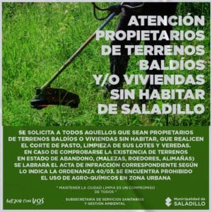 A partir de hoy lunes 8 de enero, se fortalecerán las labores de fumigación de mosquitos con el objetivo de prevenir la encefalitis equina. Estas acciones se llevarán a cabo periódicamente en distintas zonas del partido de Saladillo, teniendo en cuenta los diversos aspectos climatológicos que se requieren para realizar dicha tarea.