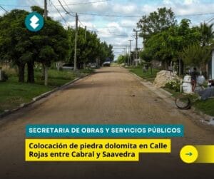 Como parte de la obra de cordón cuneta llevada acabo en el barrio Falucho, se realizó la colocación de piedra dolomita sobre la calle Rojas entre Cabral y Saavedra.