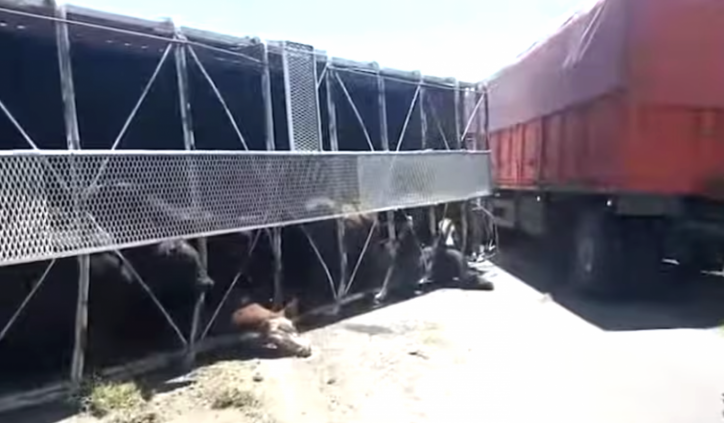 El vehículo, perteneciente a la firma Larrauri, sufrió el accidente con el acoplado cargado de animales. Minutos después, vecinos de la zona se acercaron al lugar para retirar y faenar los animales en el mismo lugar del siniestro.