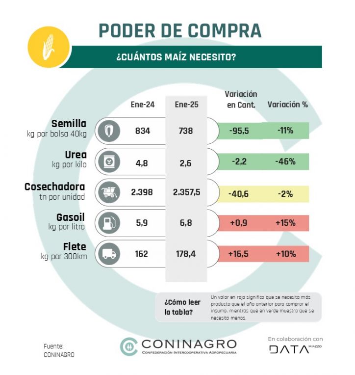 CONINAGRO presentó su informe mensual que analiza el poder de compra de seis productos clave de la producción agropecuaria en Argentina: soja, maíz, trigo, ternero, novillito y leche. Este indicador mide la capacidad de estos productos para adquirir una amplia gama de insumos, costos e inversiones del sector agropecuario, que incluyen herbicidas, fletes y maquinaria, y 20 variables más que se analizan.