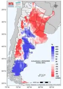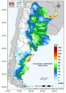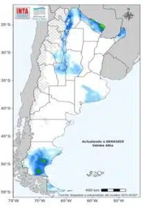 En las próximas dos semanas se esperan precipitaciones con importantes acumuladas en gran parte del territorio. Los acumulados serían mayores sobre en el sudoeste de la reg. Pampeana, norte del NEA y este de Patagonia.