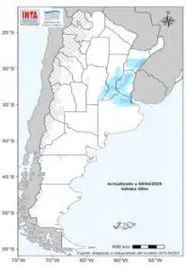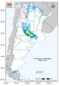provincias de Córdoba, sur de Santa Fe, Entre Ríos y norte de Buenos Aires. Mientras