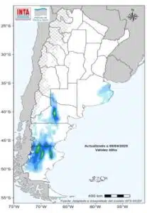 Al día de la fecha, el pronóstico prevé varios días con condiciones de tiempo inestable sobre el centro y norte del país. Hay probabilidad de lluvias y tormentas de variada intensidad sobre la mayor parte del centro y norte argentino. Lluvias y algunas nevadas dispersas sobre la Patagonia (centro y sur).