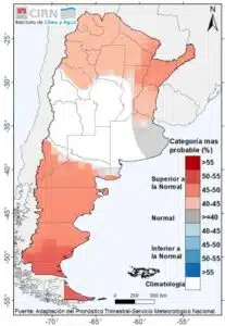 que, las probabilidades de un trimestre más seco son mayores en Patagonia.