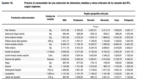• Carnes y derivados: con variaciones que llegaron hasta el 5,9% en el Noroeste.