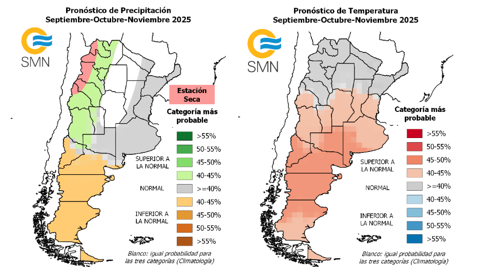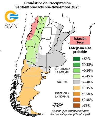 El Servicio Meteorológico Nacional (SMN) dio a conocer su pronóstico trimestral de consenso para el período septiembre-noviembre, que además de abarcar gran parte de la primavera, constituye el período de inicio de la siembra gruesa en Argentina.