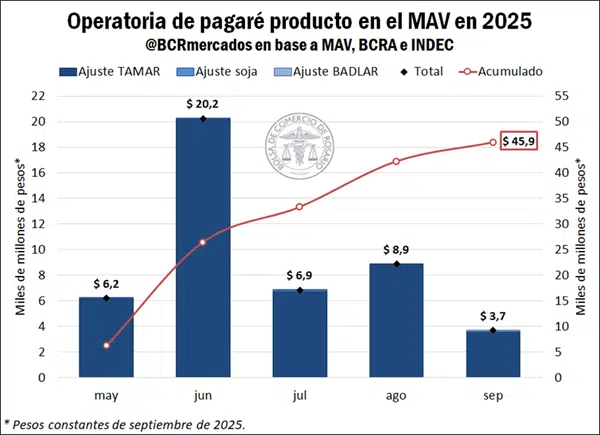 Además, el MAV incorporó un nuevo producto: los pagarés bursátiles a la vista, que permiten indexar tasas a indicadores como soja, BADLAR o TAMAR. Desde mayo, este instrumento ya movilizó $45.900 millones, mayormente vinculados a la tasa TAMAR.