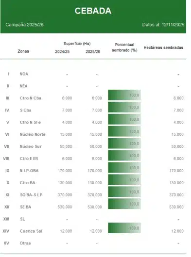 La campaña de cebada 2025/26 inicia una nueva etapa con el comienzo de la cosecha en el Centro-Norte de Santa Fe, un avance que, según las proyecciones, debería generalizarse hacia el centro de la región agrícola en los próximos 10 a 15 días.