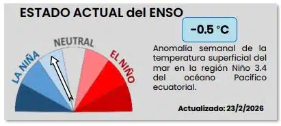 Las condiciones de La Niña continúan presentes, aunque en proceso de debilitamiento.
