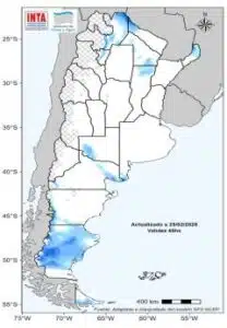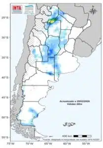 Acumulados inferiores a los normales en región del Litoral, el centro de la región Patagónica y áreas cordilleranas de Cuyo.